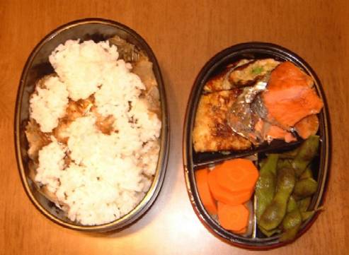 左下:にんじんとタマネギをスープ(市販のコンソメ)でゆでたものです。