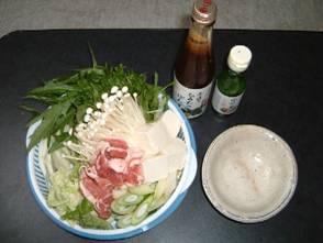 基本野菜……白菜、白葱、きのこ類(椎茸、しめじ、えのき、えりんぎなど)、糸蒟蒻