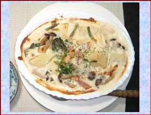 | 法蓮草 | 80g | D@〜Cを混ぜ合わせて器に盛り、チーズを載せて焼く。 | |||||||||||||