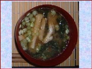 | 薄揚げ | 1/10枚(2g) | Aだし汁に味噌を溶かしいれて@の材料を入れて刻み葱を入れてでき上がり。 | ||||||||||||||||||
