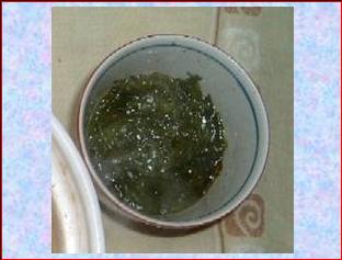 @雌株若布に青しそドレッシングをかけるだけ!ネバネバがおいしい。