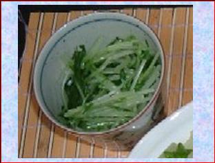 @熱湯を沸かし、さっと茹でてざるにあげ水気を絞って器に盛る。