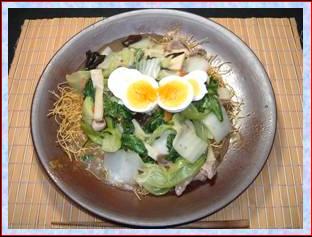 | シャンタン | 小さじ1杯 | H器に揚げ麺を盛り、Gのあんをかけ、上に@の半熟卵を輪切りにしたものをのせて出来上がり。 | ||||||||||||||||