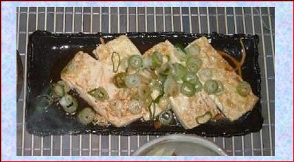 | 塩 | 少々 | A豆腐を器に出してから、フライパンに小口切りの葱と煮物のタレを入れ、弱火で加熱して少し煮つめて、@の上にかけて出来上がり。 | ||||||||||||||||||